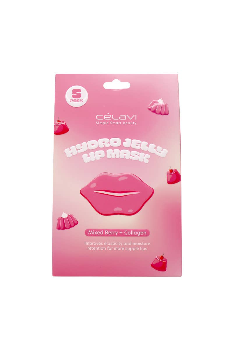 Celavi LM002 Mixed Berry & Collagen Hydro Jelly Lip Mask. A nourishing lip treatment that improves elasticity and enhances moisture retention for softer, more supple lips. Enriched with the antioxidant-rich blend of mixed berries and the firming properties of collagen, this mask helps to smooth and hydrate dry lips while promoting a fuller, healthier appearance. Its jelly texture delivers a cooling, refreshing sensation, making it the perfect self-care essential for lips in need of a moisture boost. 5 lip masks. 1 set.