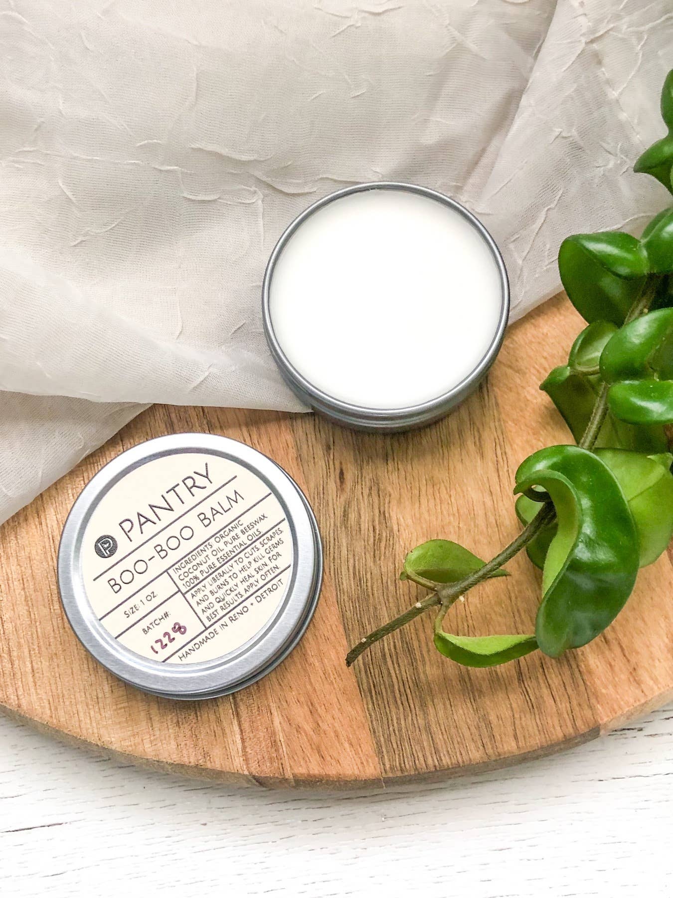 Each balm is housed in a 1 oz aluminum twist-top tin.