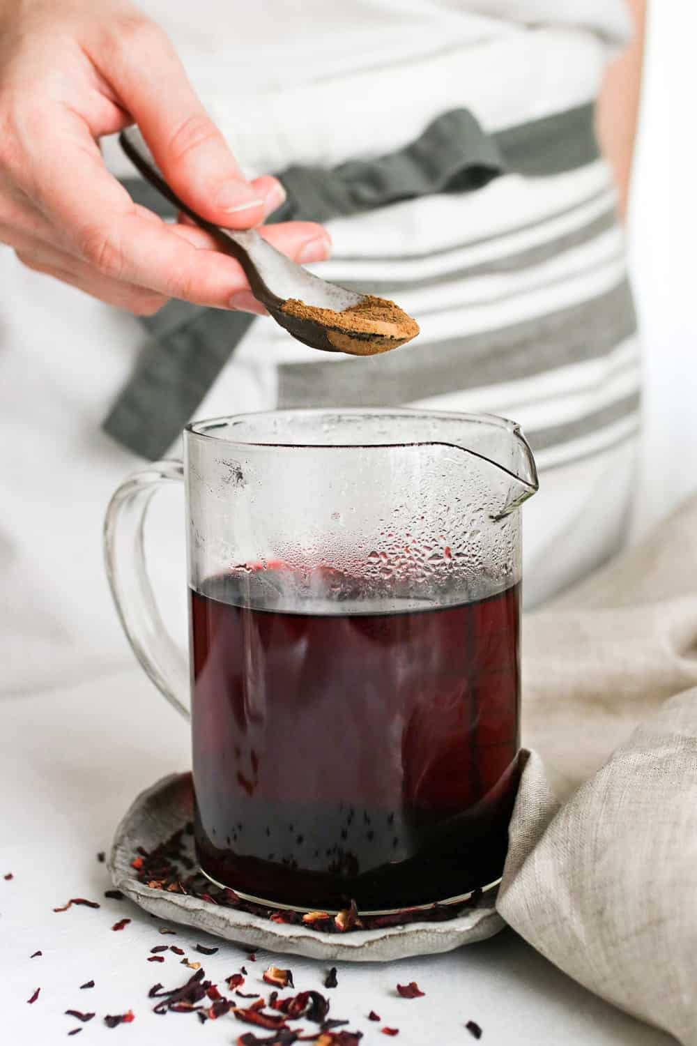 Ingredients: organic hibiscus petals, distilled water, witch hazel, rosehip oil, pomegranate powder