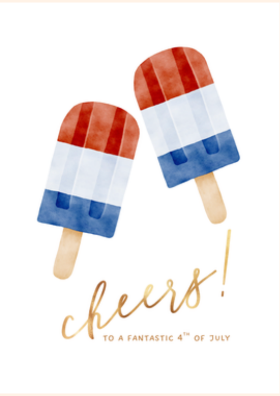 Celebrate in cool, colorful style with this festive card featuring two red, white, and blue popsicles and the cheerful message: “Cheers! To a fantastic 4th of July.” Perfect for sending patriotic vibes, summer party invites, or just a fun hello during the holiday. Printed on high-quality cardstock with a blank inside for your personal message.