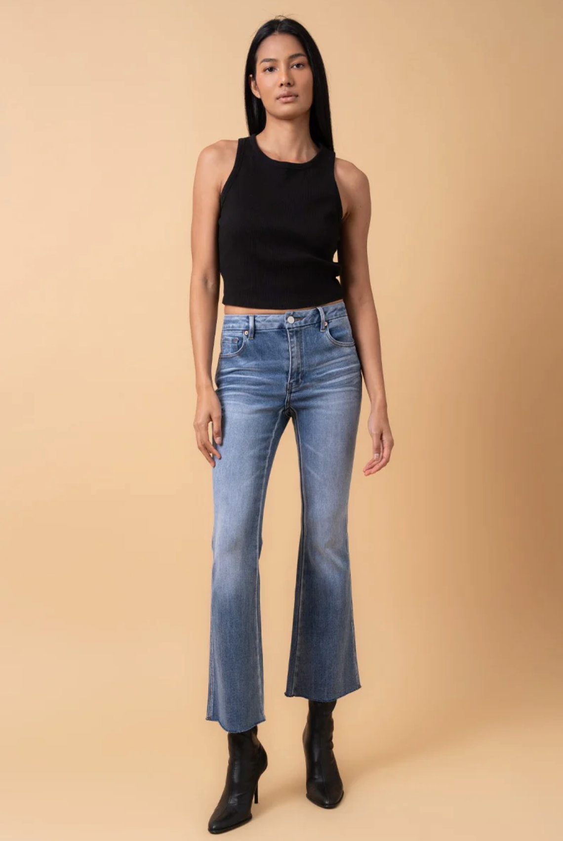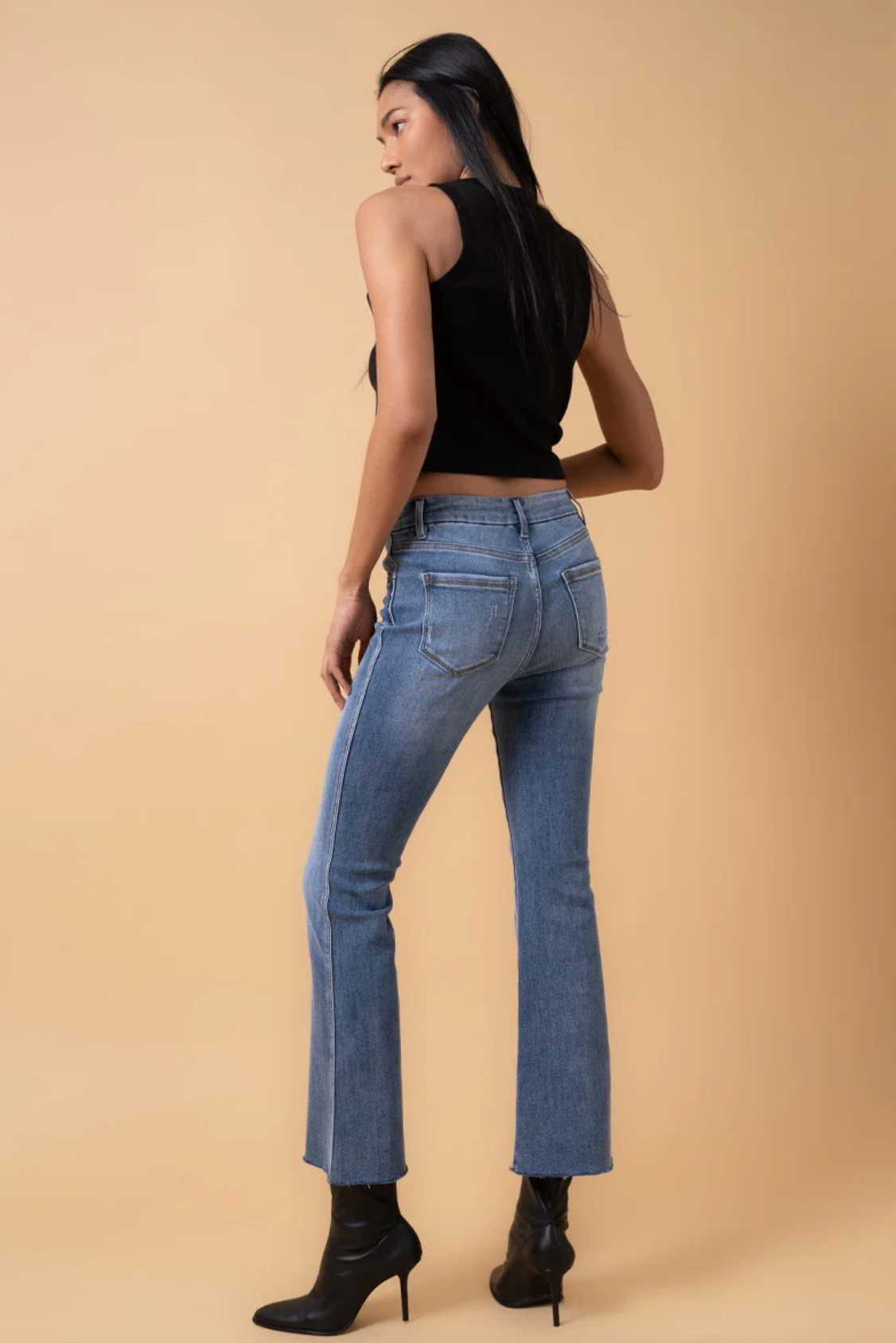 Introducing our Mid Rise Crop Flare Jeans, a must-have for any stylish and versatile wardrobe. With its flattering mid rise fit and trendy crop flare design, these jeans provide the perfect balance of fashion and functionality. Elevate your look with this essential piece. They have lots of stretch and fit true to size.