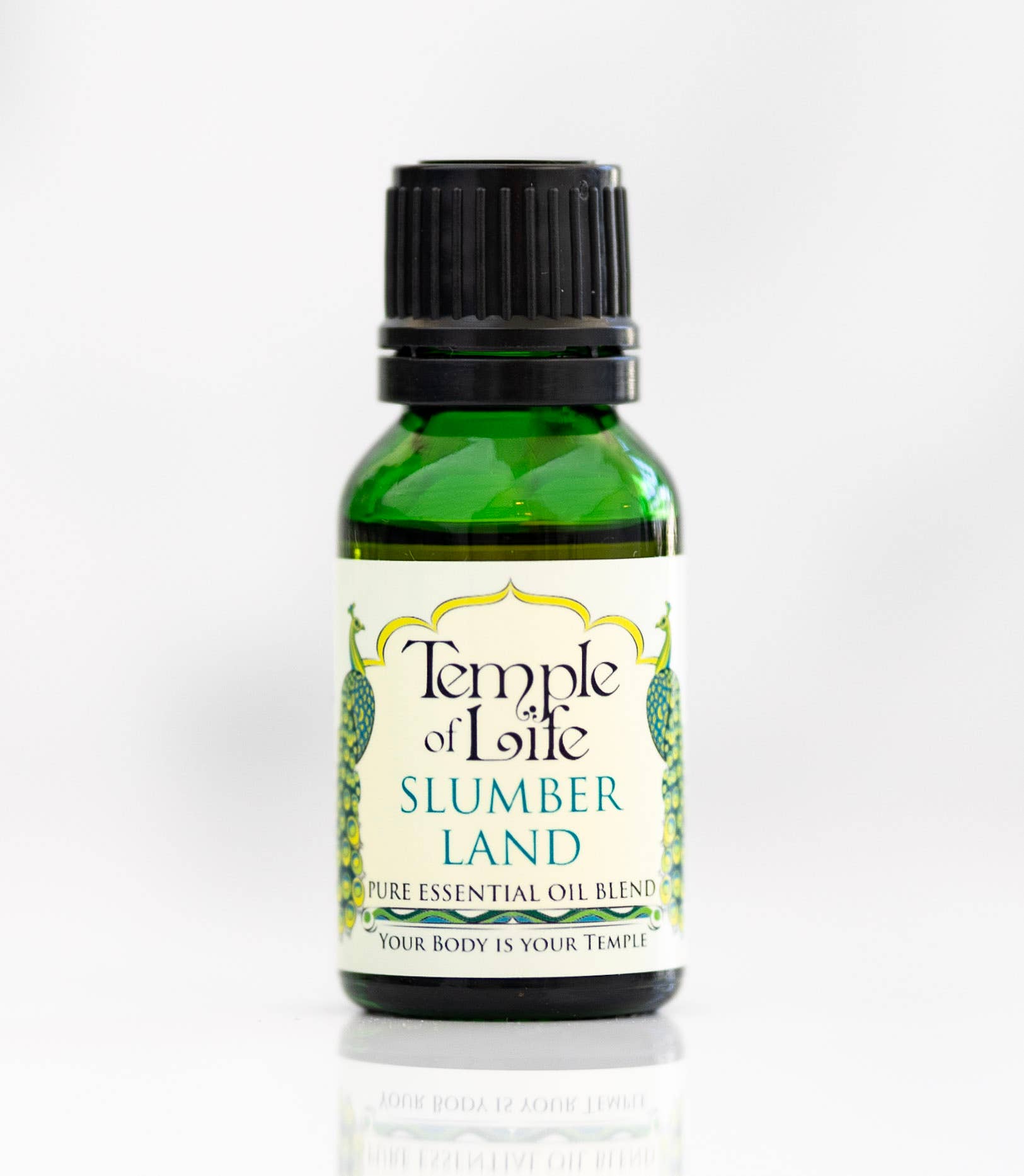 Slumberland therapeutic essential oil enhances meditation & restfulness. This extremely grounding blend is designed to help center the body & therefore quiet the mind.