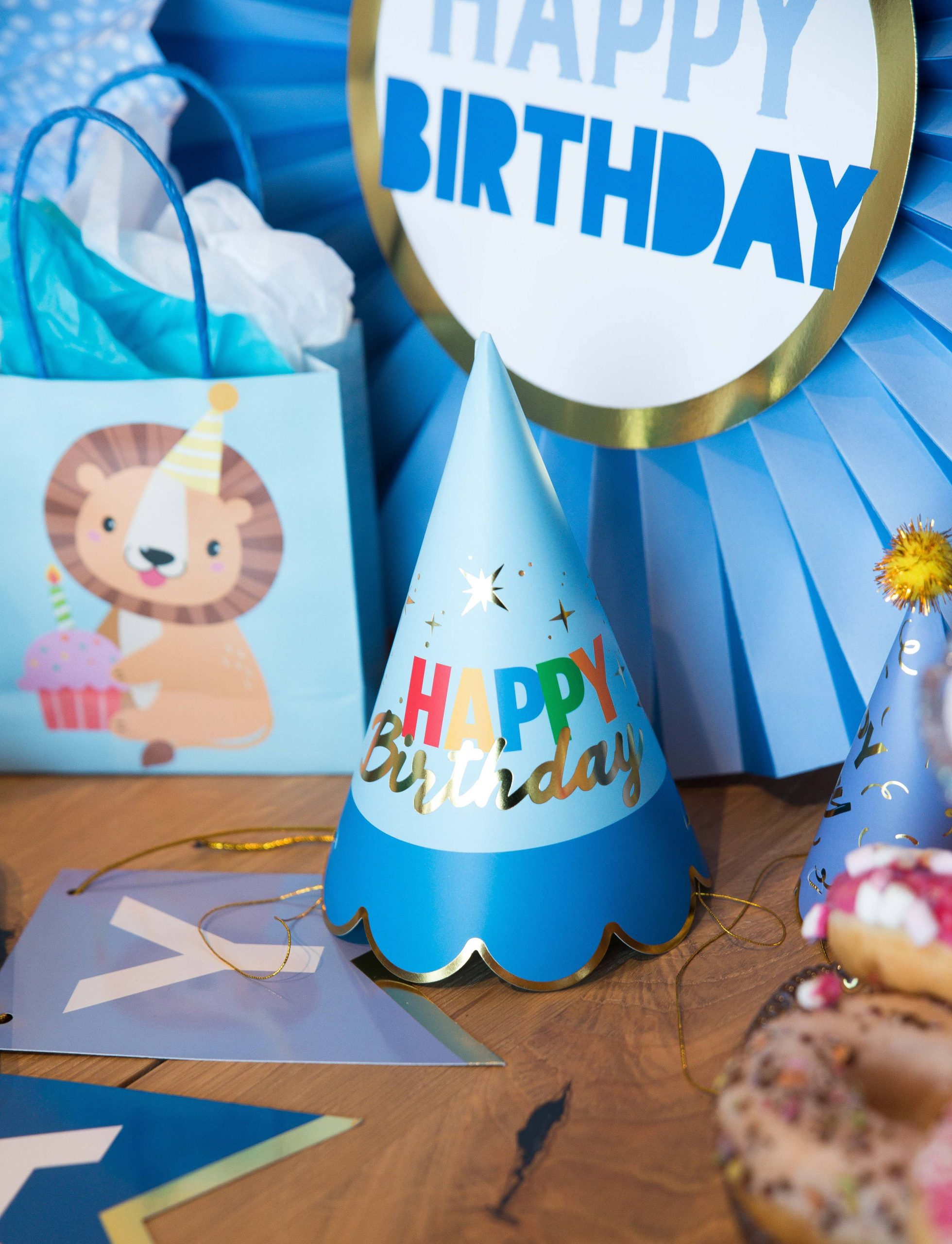 Upgrade your store’s party essentials with our Happy Birthday Party Hats. Each package includes 8 hats in a delightful mix of three cheerful colors: blue, yellow, and pink. At 7 inches tall, these hats are the perfect size for festive birthday fun. Designed with elegant scalloped edges and shimmering gold foil accents, they add a touch of sophistication to any celebration. Packaged in paper box, these party hats are as sustainable as they are stylish. Stock up on this versatile party favorite to offer your customers a must-have decoration for birthdays of all ages!