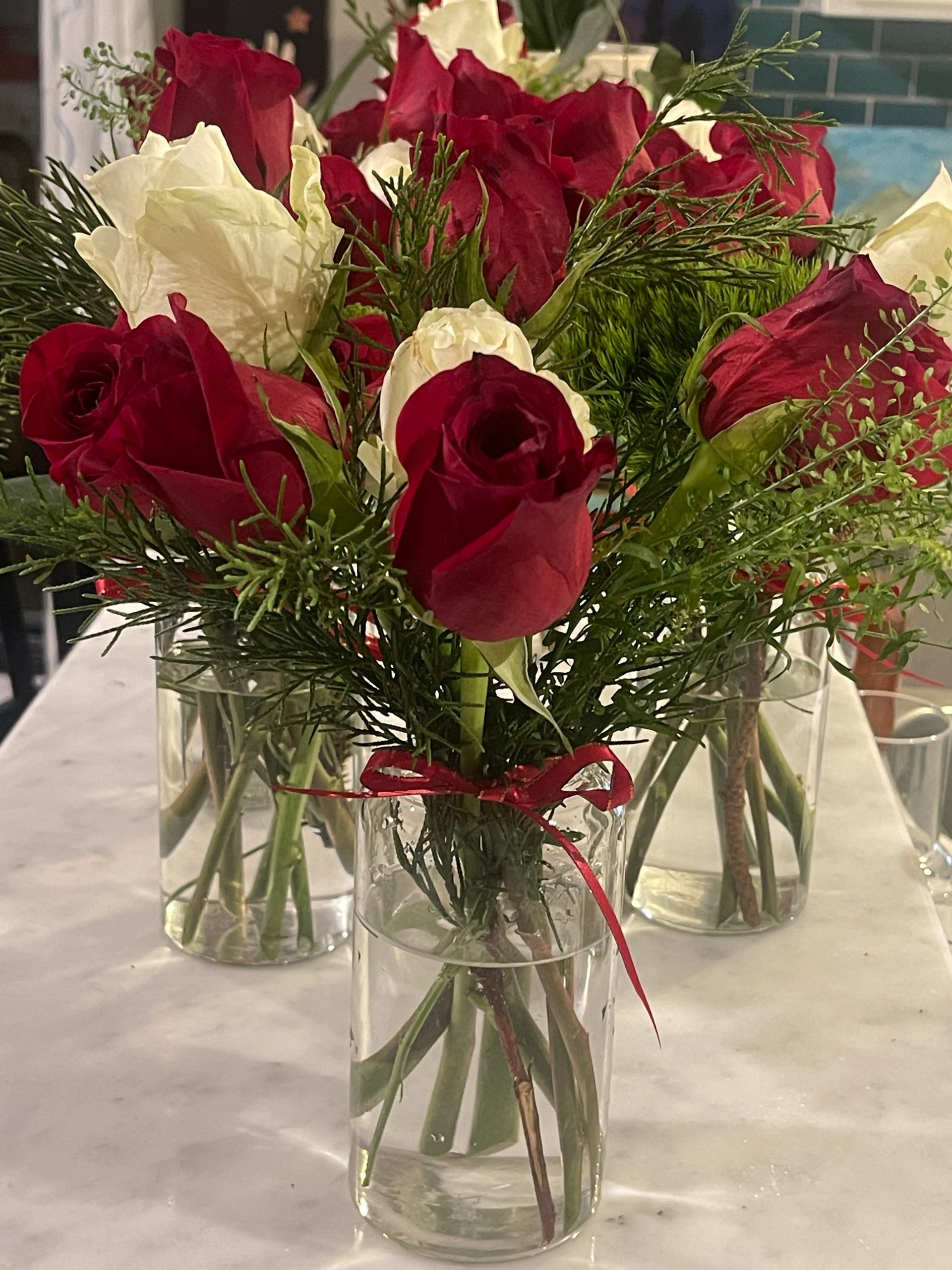 Celebrate the magic of the holidays with this stunning seasonal arrangement featuring velvety red roses, crisp white roses, and lush evergreen foliage. Designed to bring warmth and elegance to any space, this bouquet blends timeless holiday colors with the fresh, comforting scent of winter greens.