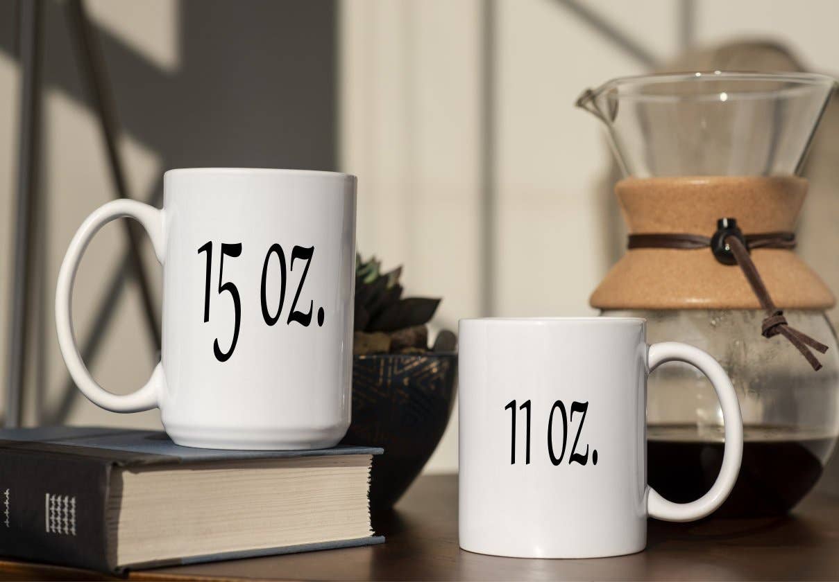 11 oz. (standard) or 15 oz. (large) mug with design printed on both sides for right- and left-handed drinkers!