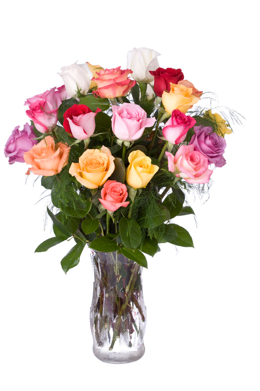 A lush and artfully curated rainbow floral arrangement featuring a seasonal mix of blooms in full, vibrant color. Designed to delight the senses, this piece blends fresh-cut flowers with natural greenery, offering balance, texture, and a touch of whimsy. Perfect for gifting, celebrations, or simply brightening a space with beauty and joy.