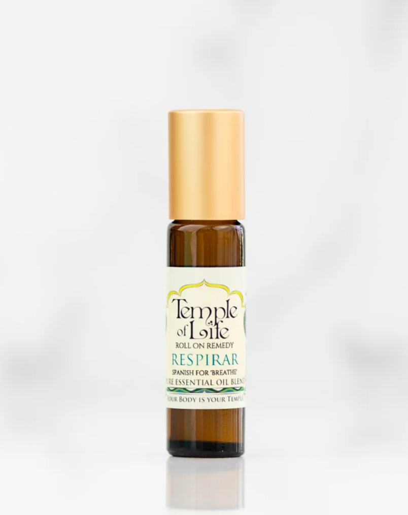 Respirar is Spanish for ‘breathe’. The specific oils stimulate, open & guard the respiratory system & sinuses with alluring & cooling aromas. Useful for prevention or coping with stuffy symptoms. A must have for Winter wellness.