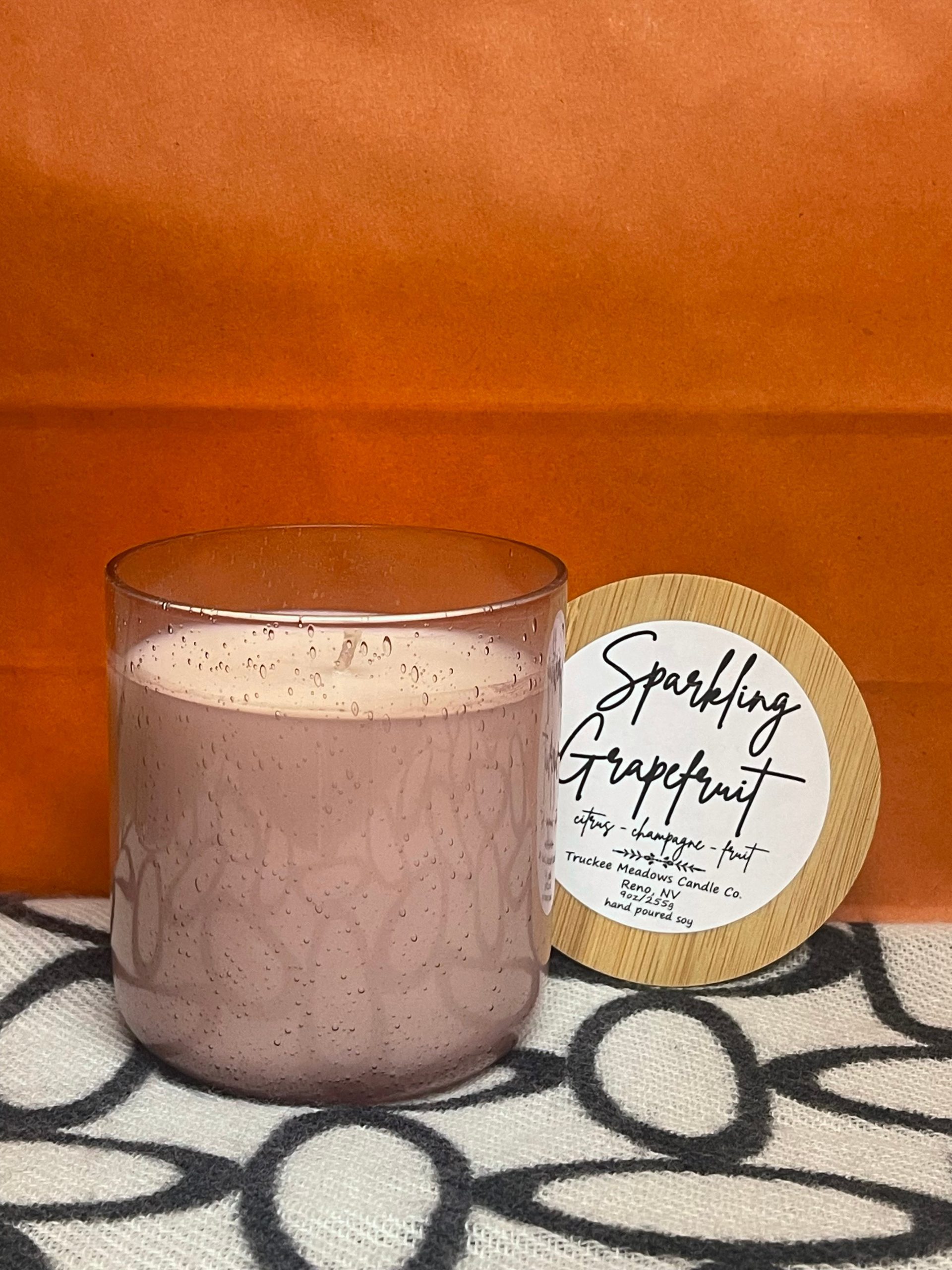 Pop, fizz, glow. Sparkling Grapefruit is a bright and bubbly blend of citrus, champagne, and fresh fruit—capturing the essence of a celebratory toast. Hand-poured into a 9 oz soy candle, this scent is clean-burning, refreshing, and perfect for lighting up your space with a little extra sparkle.